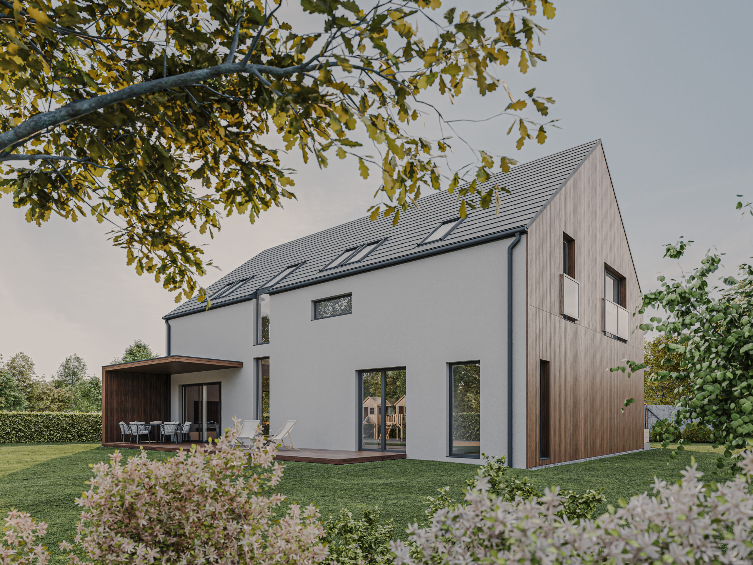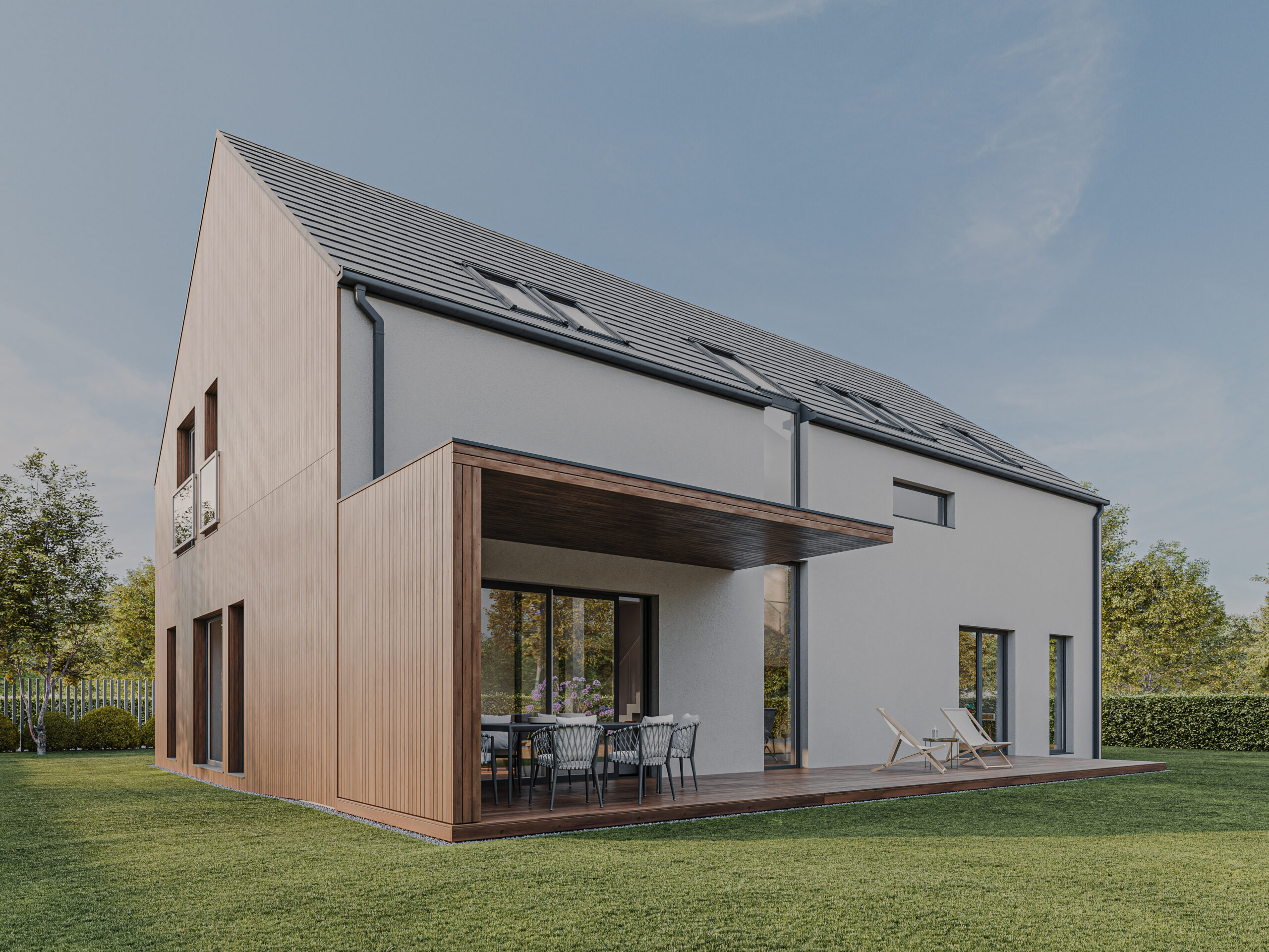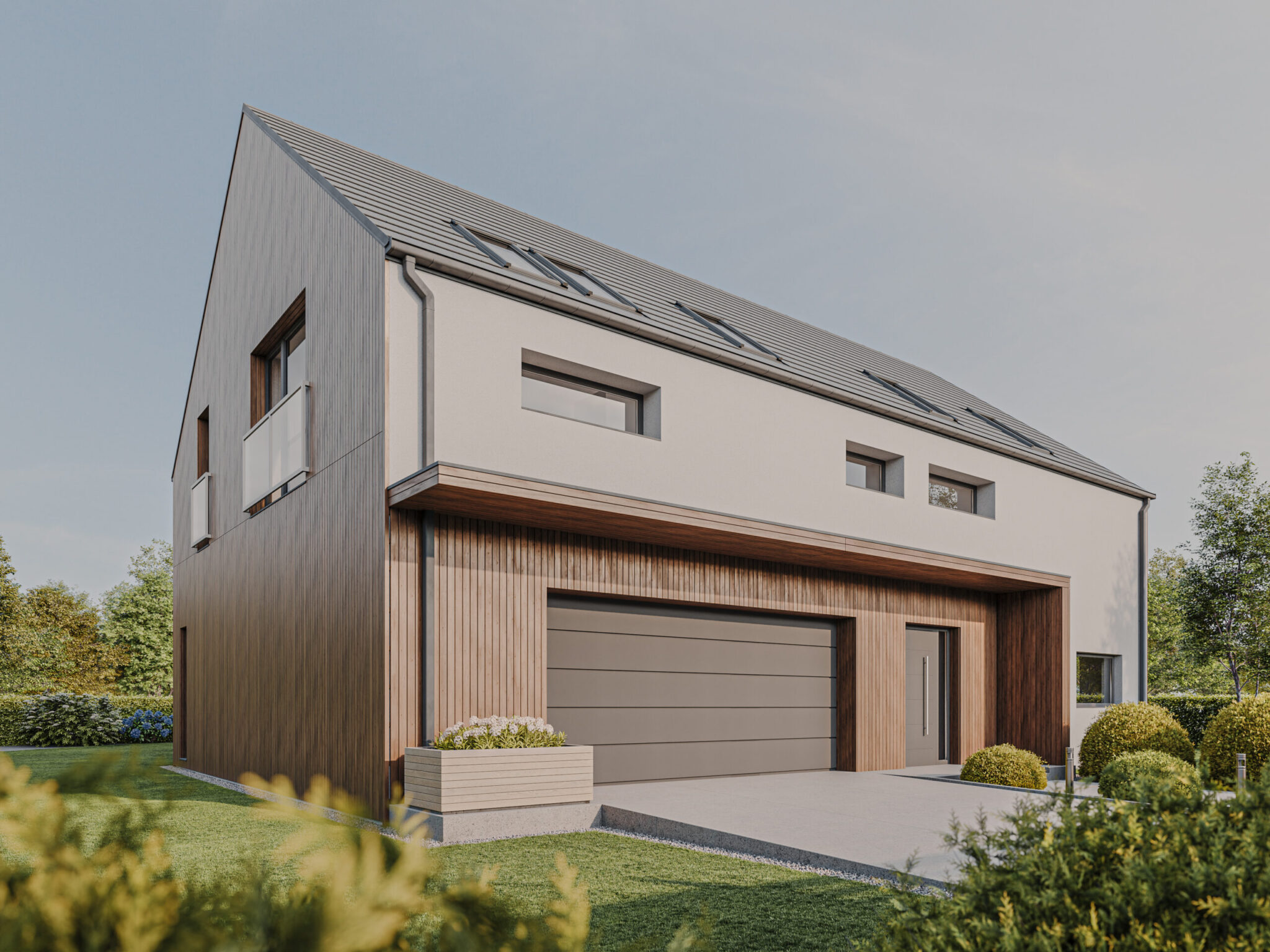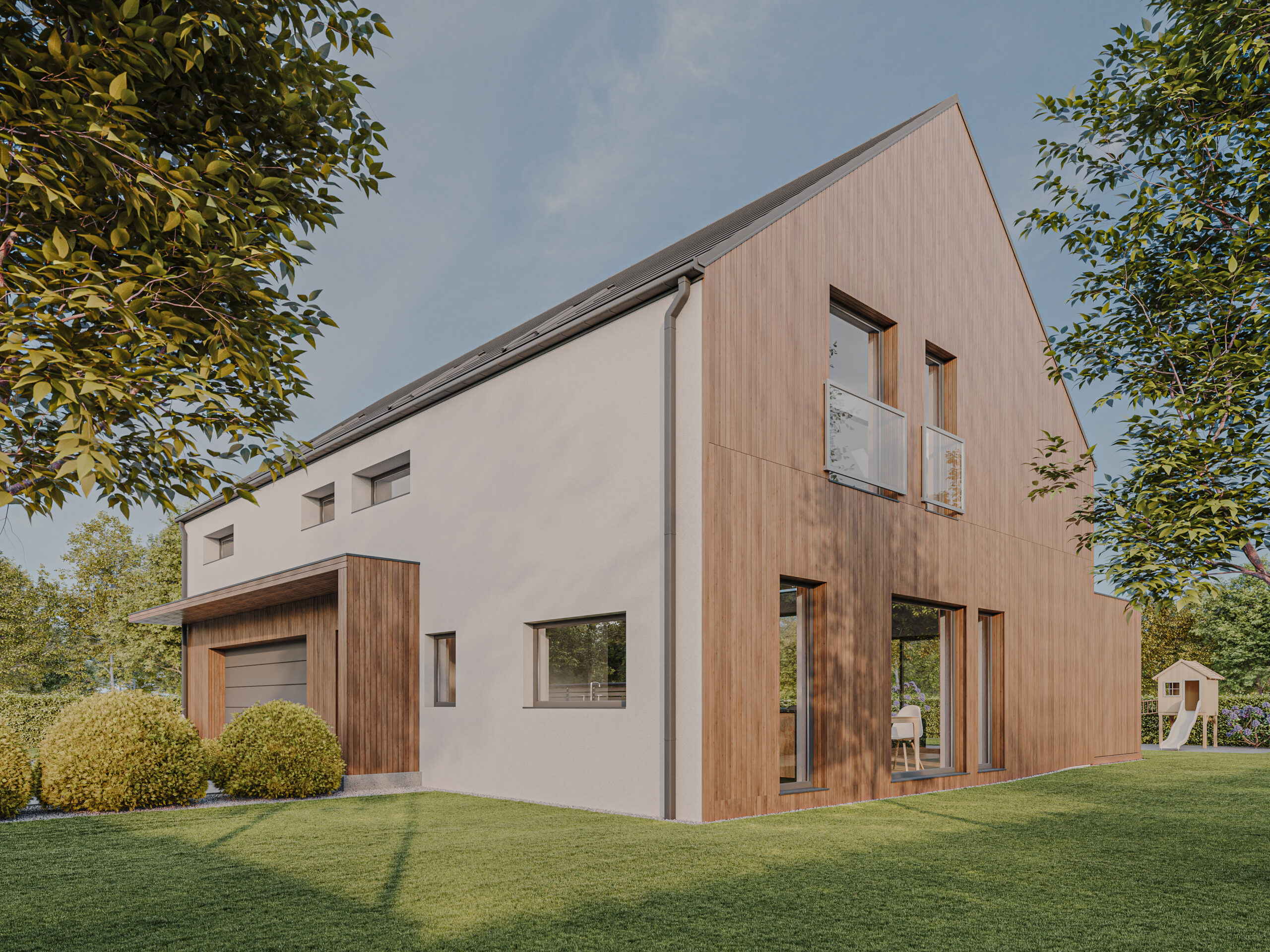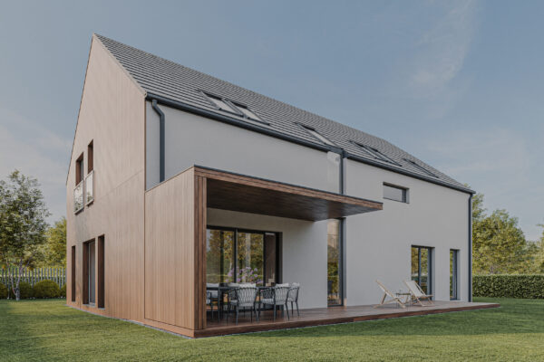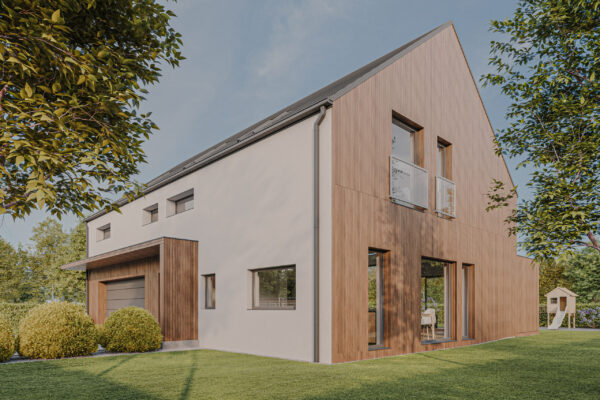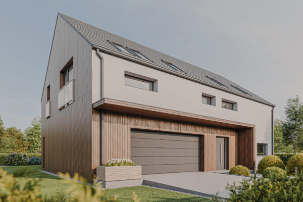 HOUSE 07 – projekt domu z poddaszem użytkowym i garażem dwustanowiskowym wbudowanym.